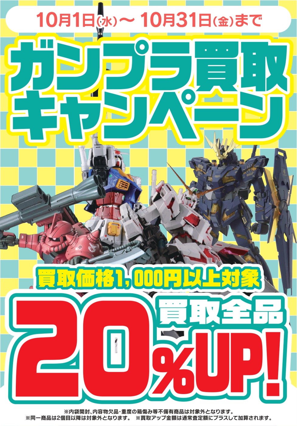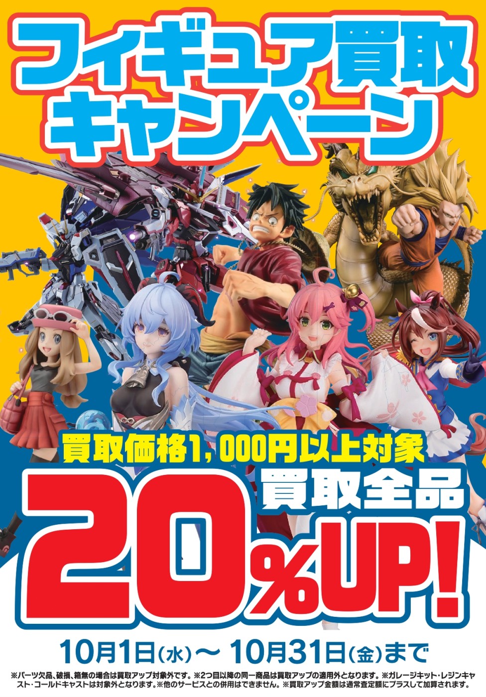 【10/1~10/31】の期間中、買取価格¥1,000以上を対象に、査定価格より【20%UP】でお買取りいたします!
