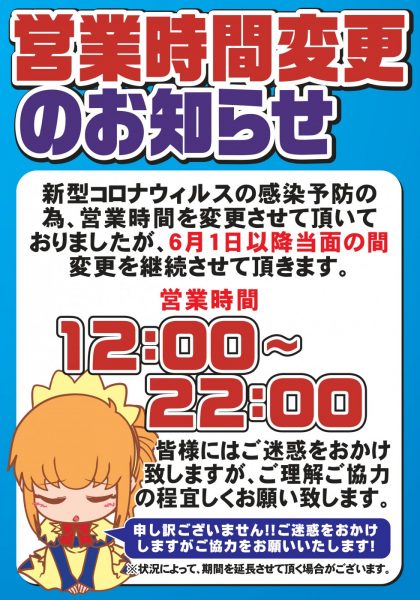 【ゼスト相模原店】2020年6月1日からの営業時間のお知らせ